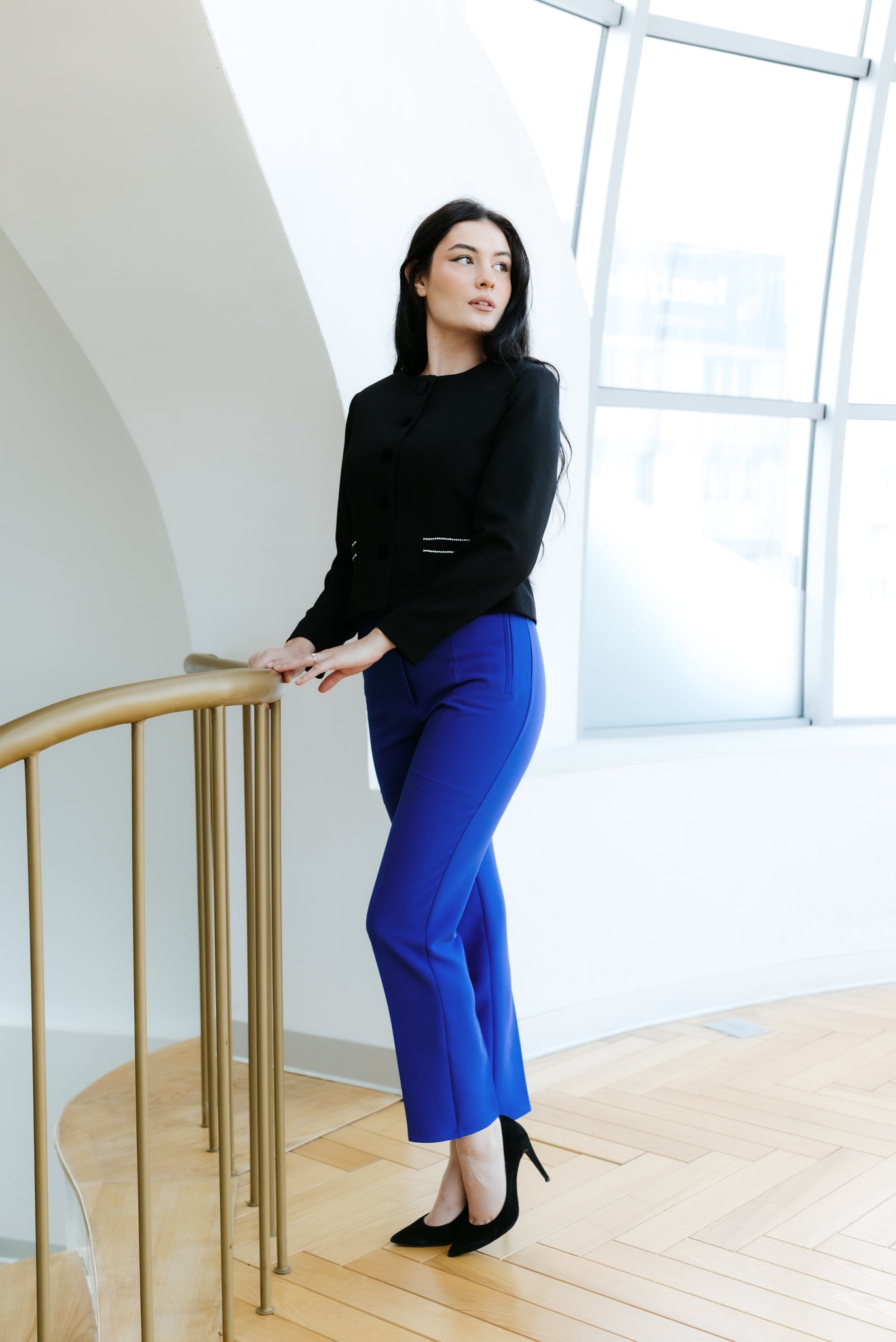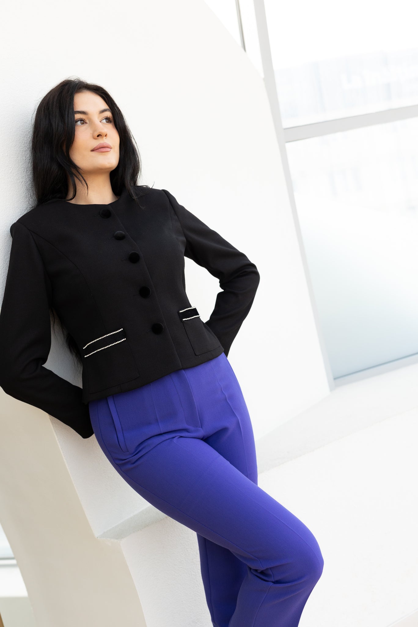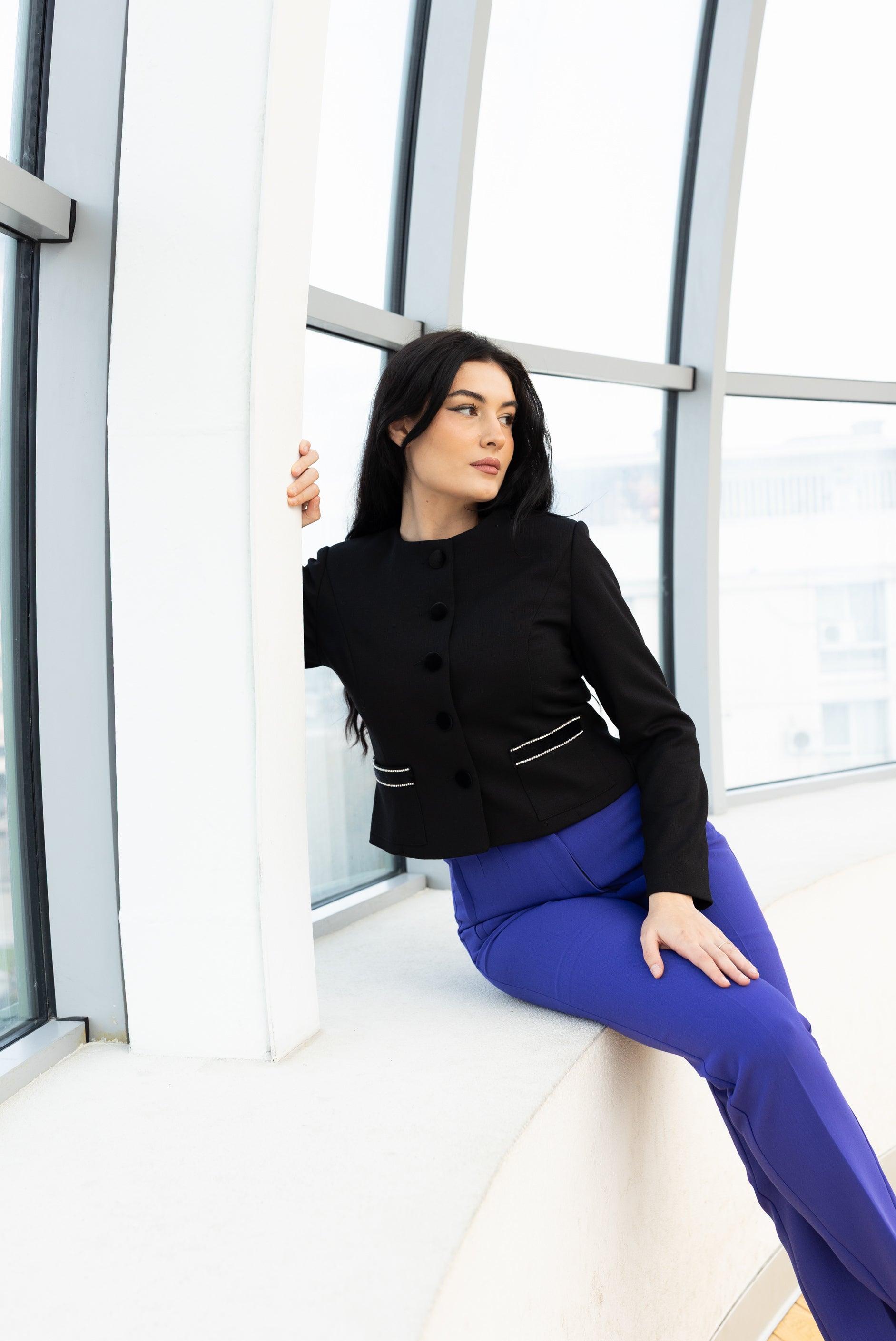 Se poate asorta cu fusta sau cu pantaloni. Sacoul acopera orice fel de imperfectiuni si denota eleganta. Este potrivit si pentru rochii elegante.
