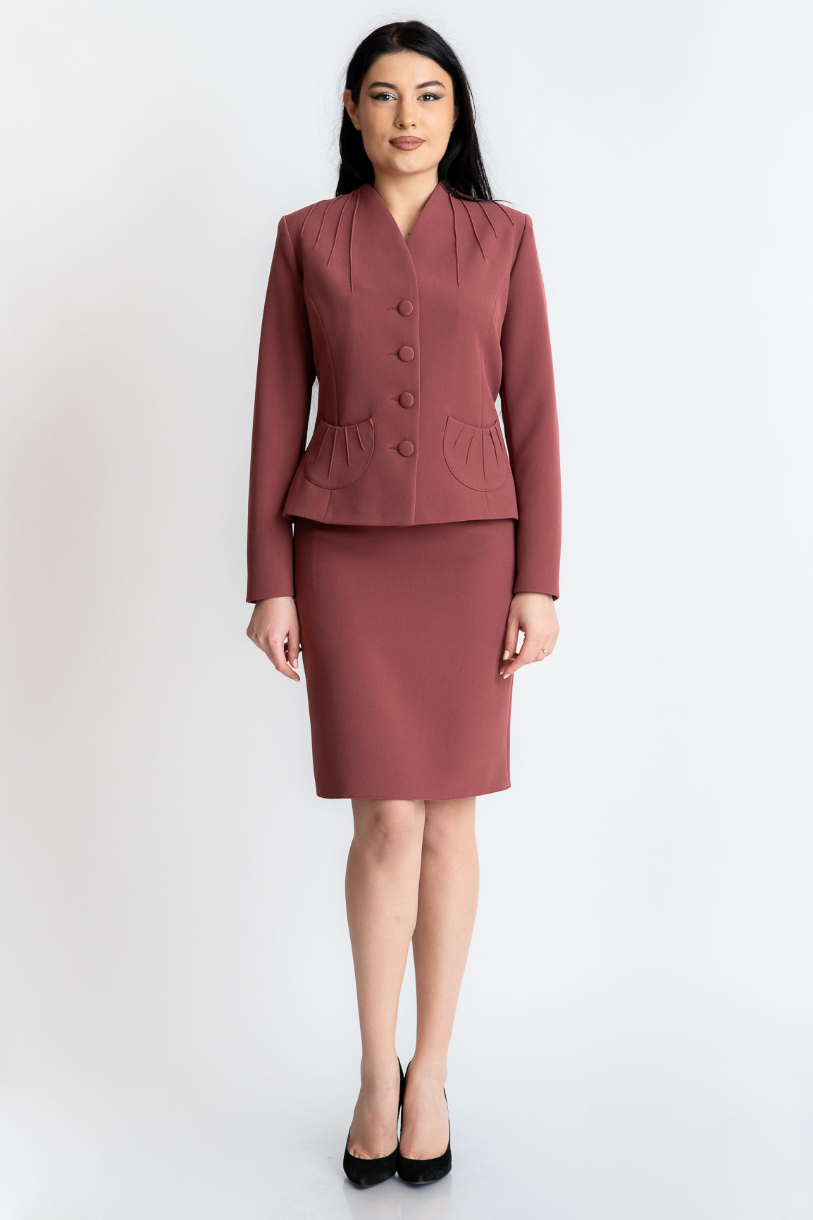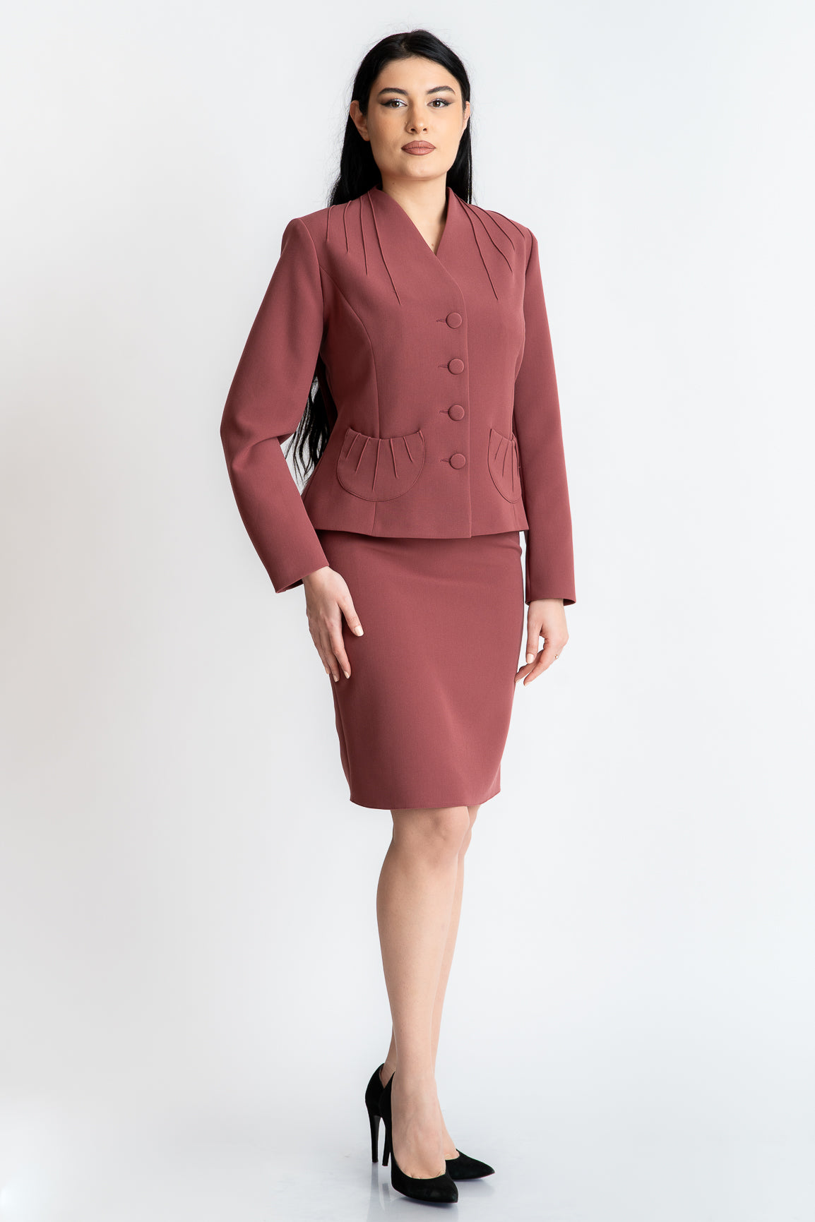 Se poate asorta cu fusta sau cu pantaloni. Sacoul acopera orice fel de imperfectiuni si denota eleganta.