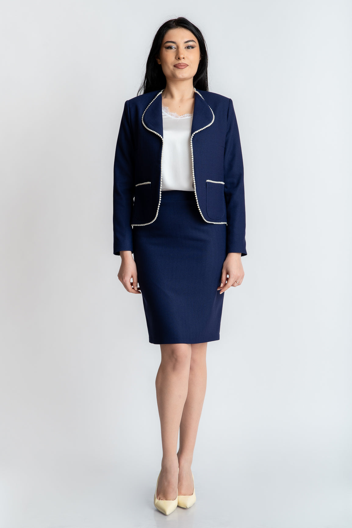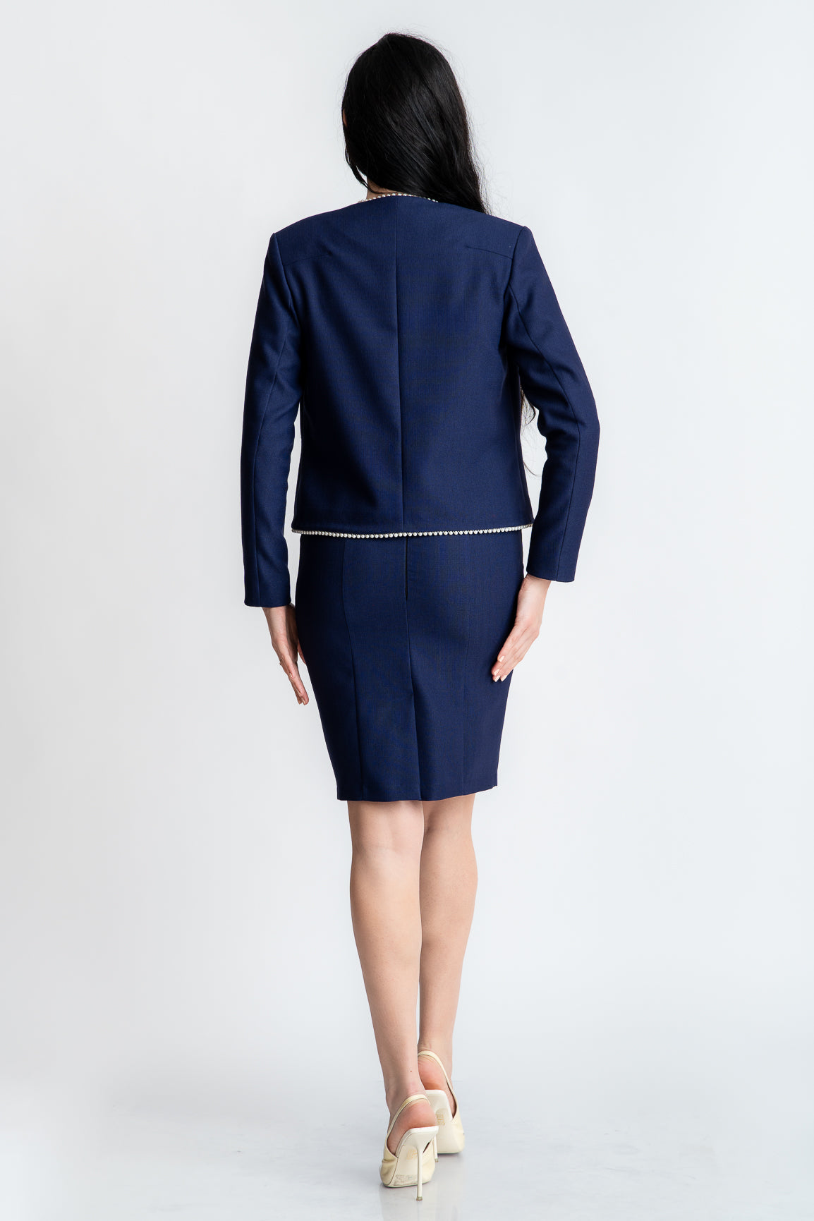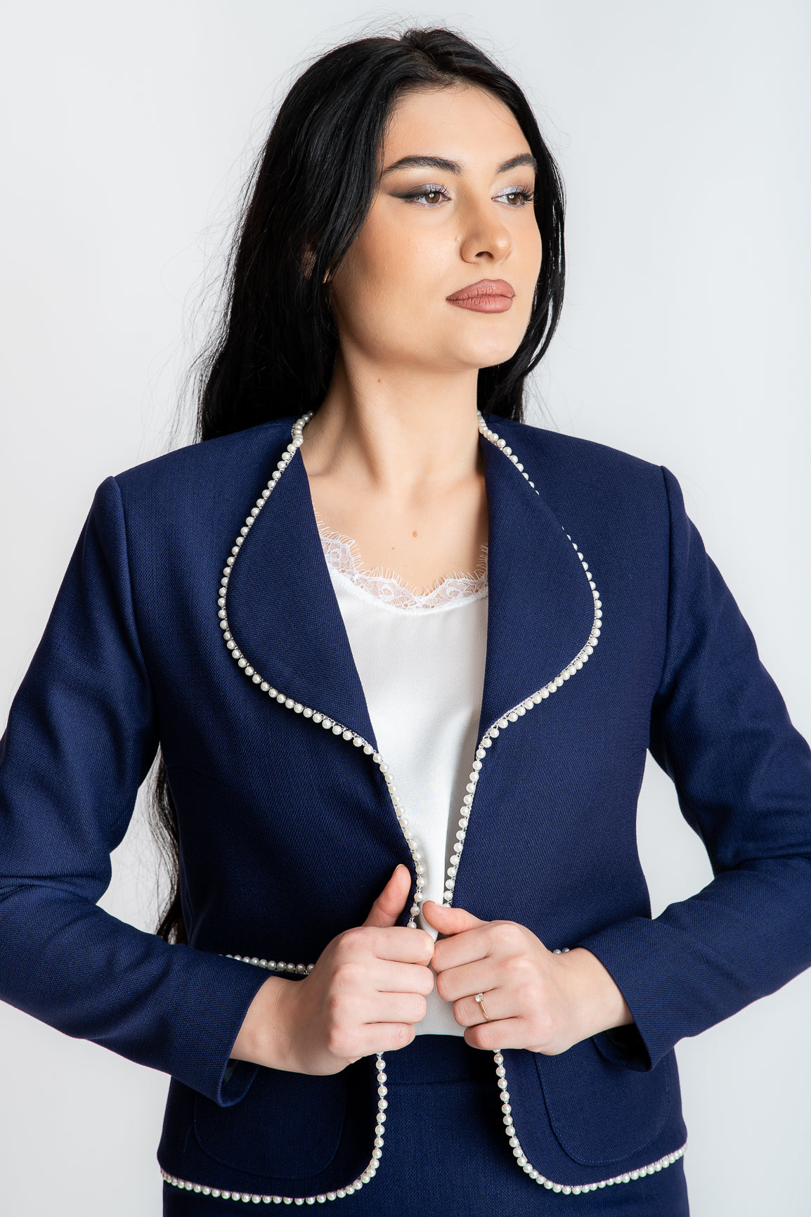Sacou cu perle, bleumarin