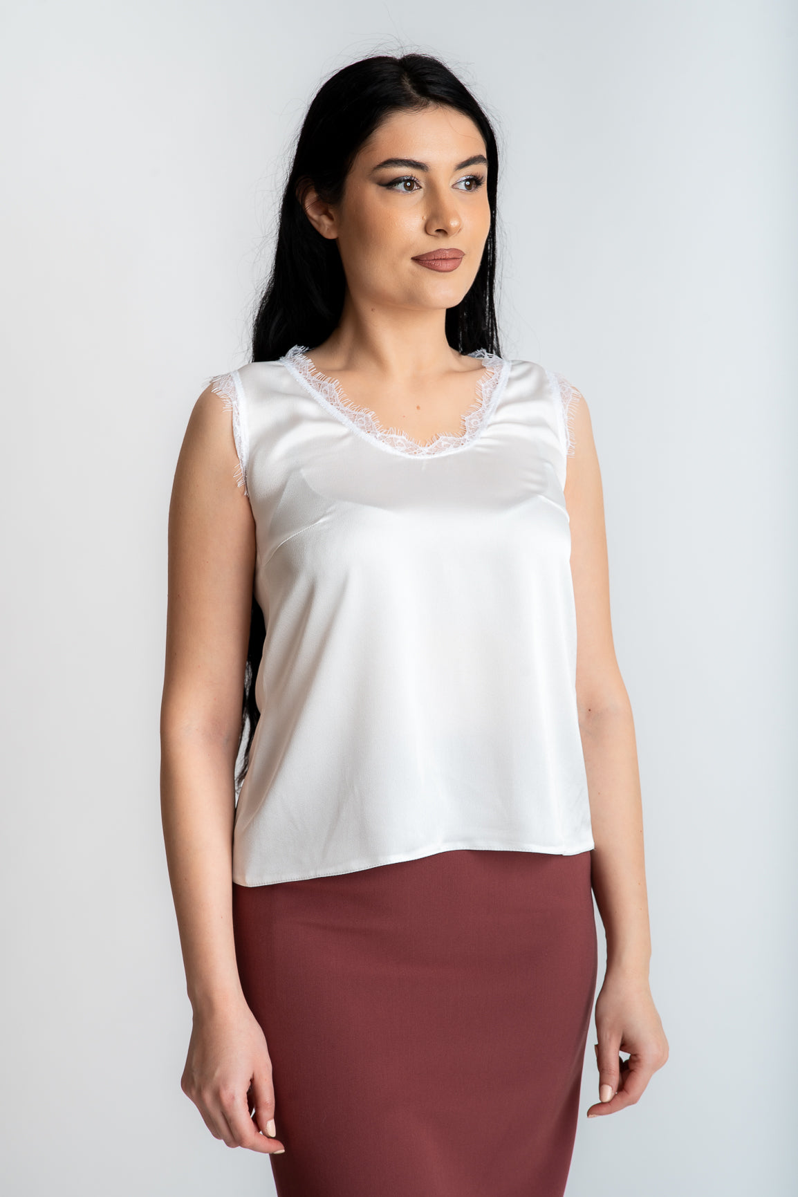 Top alb cu dantela